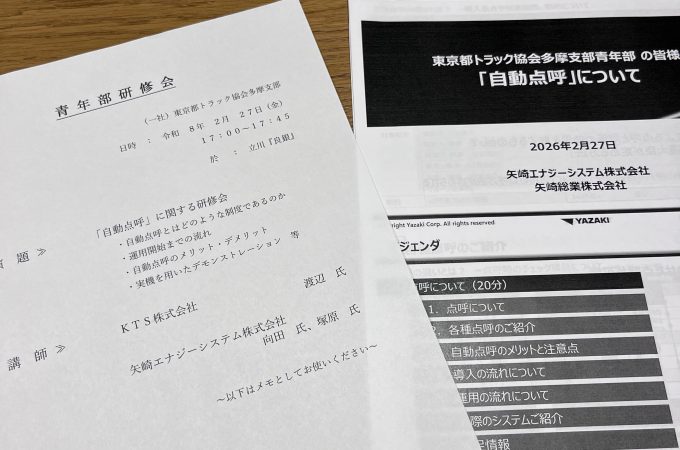 先日、業界団体主催の「業務前・業務後自動点呼」に関する研修会へ参加してまいりました。 運送業において“点呼”は、ドライバーの安全運行を支える非常に重要...